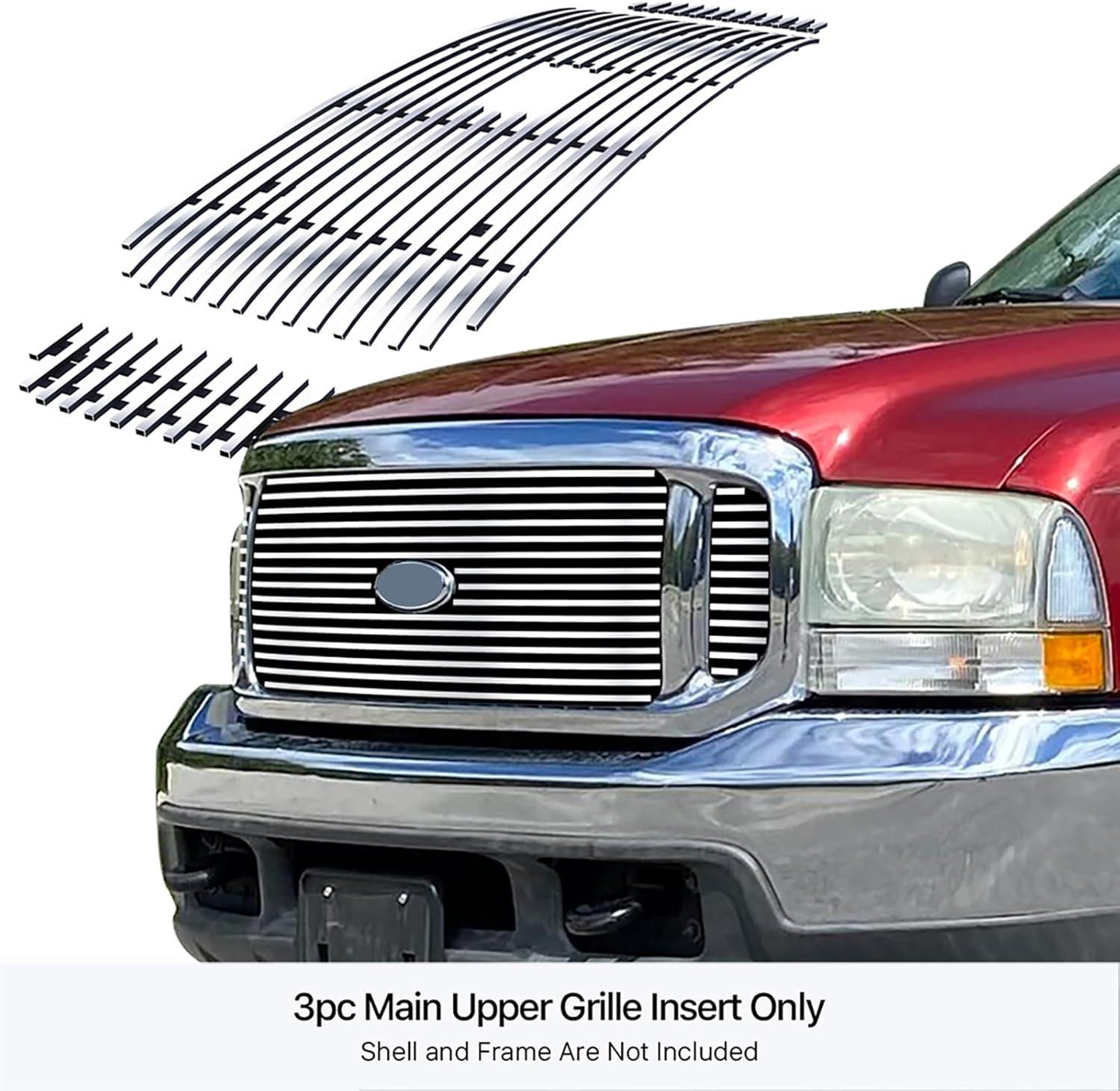 APS Compatible with Ford Excursion 2000-2004 with Logo Show Main Upper Stainless Steel Chrome 8×6 Billet Front Grill Grille Insert F65707C(Chrome)