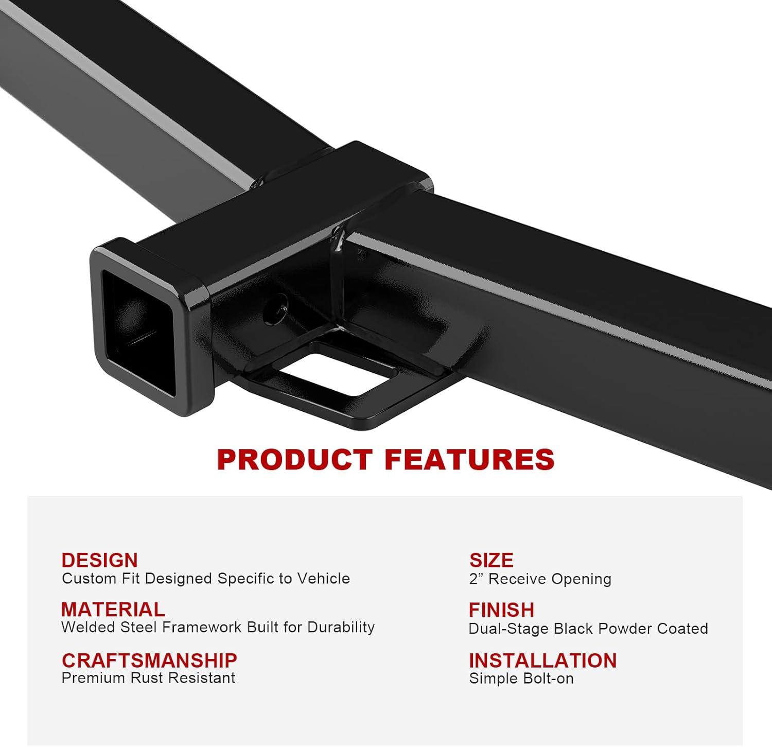 SIMPLE INSTALLATION – The trailer hitch comes with all necessary hardware for a straightforward,no drilling requiredinstallation process. The easy bolt-on design ensures quick and secure mounting.