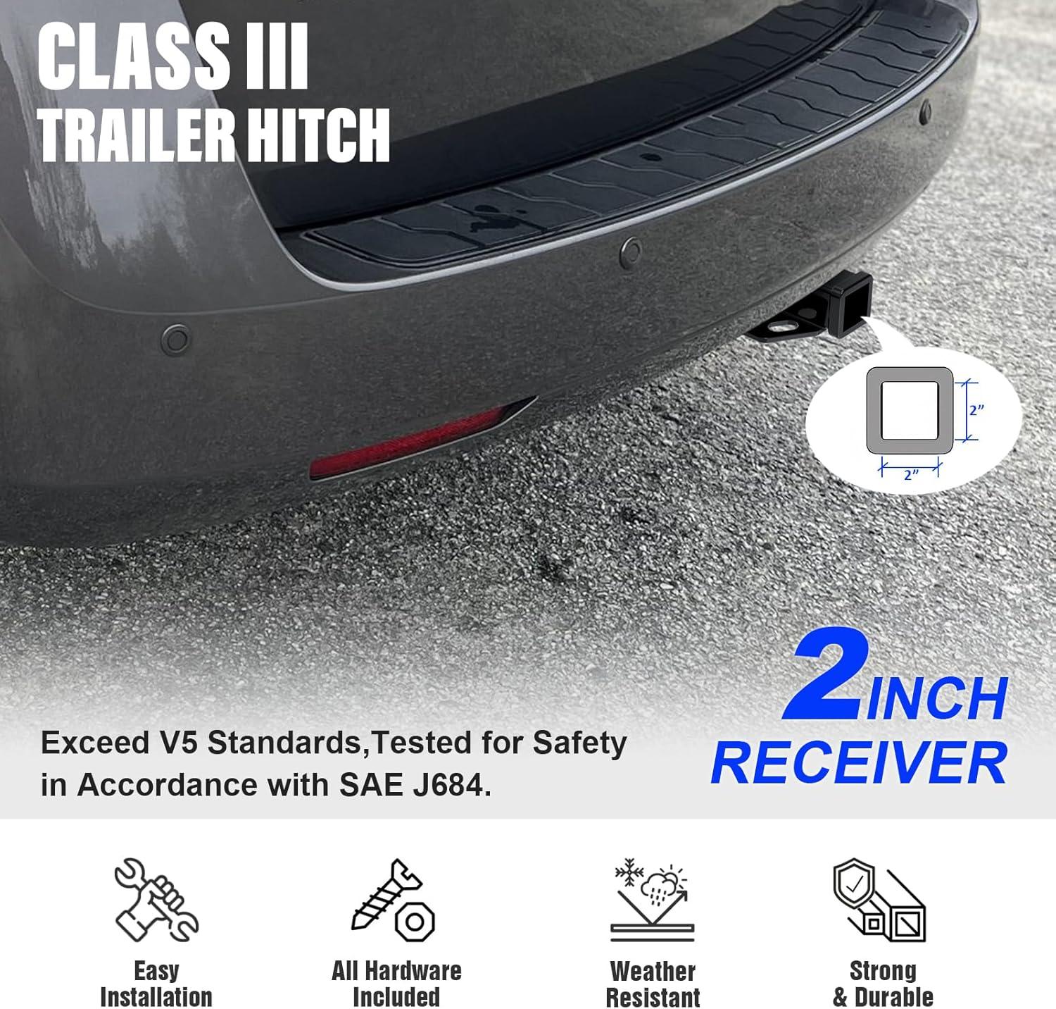 FULLY TESTED FOR SAFTY – The trailer hitch receiver exceed V5 standards,tested for safety in accordance with SAE J684.never exceed vehicle weight rating
