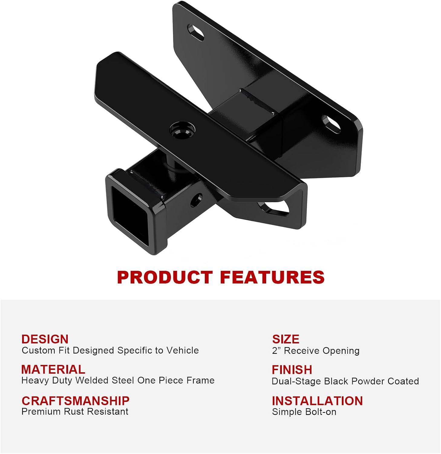 LONG LASTING CORROSION RESISTANCE – The towing hitch receiver protected by a durable high-gloss black powder coat finish, co-cured in a rust-resistant liquid aquence coating, preminum corrosion resistance for dust, chipping and extreme weather condition.
