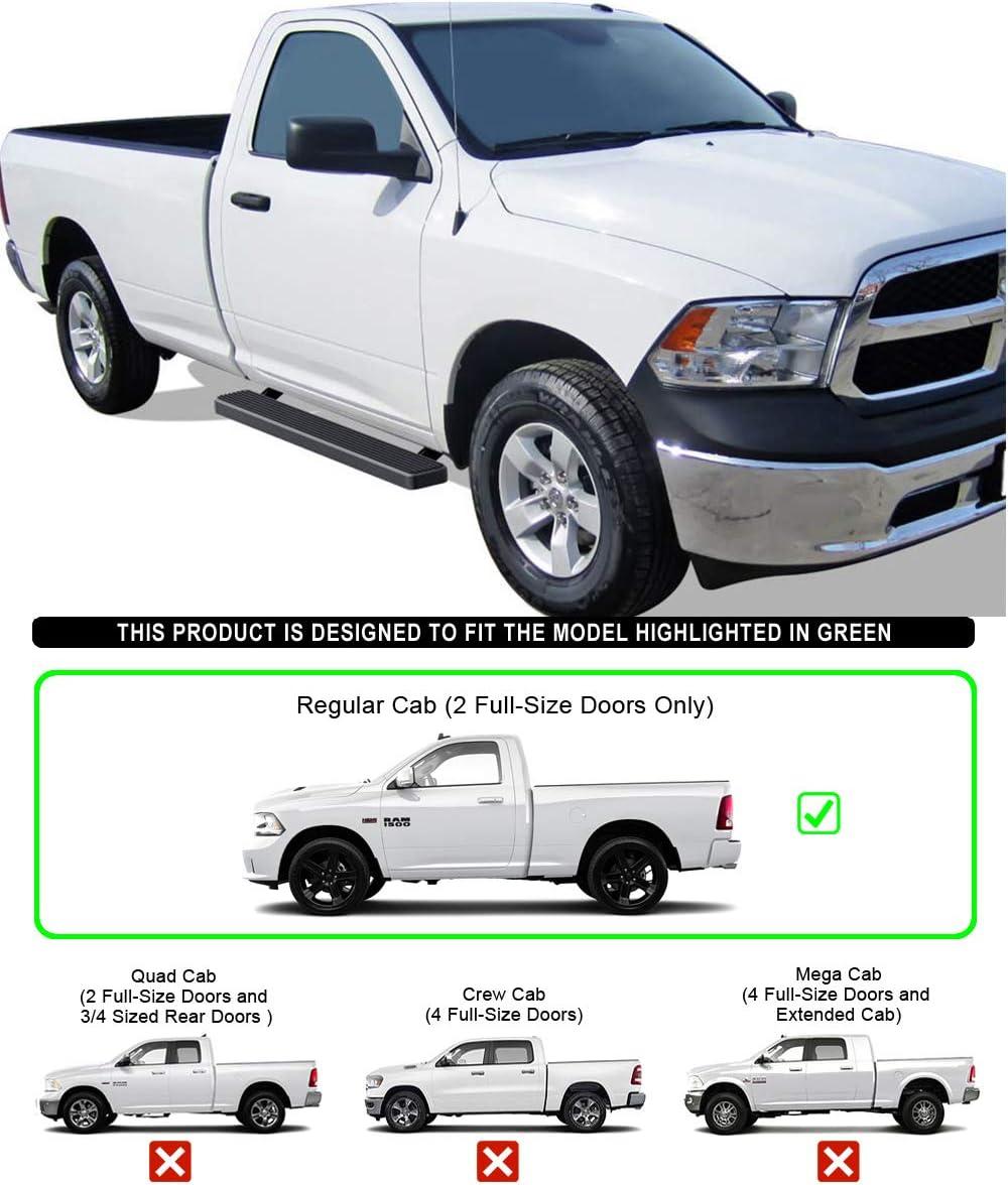 Great looking CAB LENGTH nerf bars, Compatible with Dodge Ram 1500 2009-2018 Regular Cab & Ram 2500 3500 2010-2025
